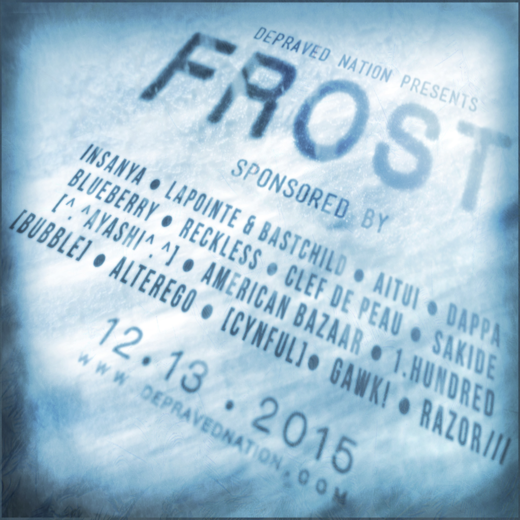 F R O S T is a full sim fashion fair hosted by Depraved Nation. Over 100 brands bringing you NEW & EXCLUSIVE items in a serene winter environment. Visit the Depraved Nation website for a gallery of the new & exclusive releases brought to you by some of your favorite designers!